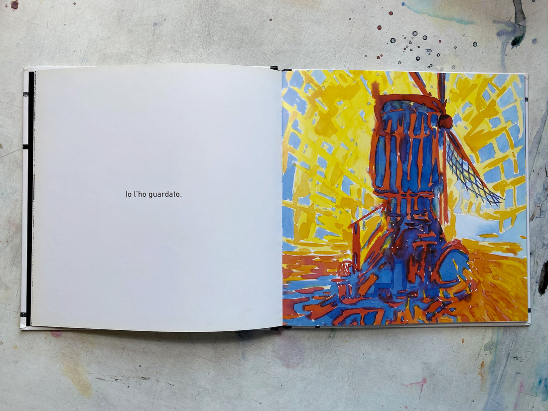 New York accoglie Mondrian nel 1940. L'artista, in fuga dall'angoscia della guerra, elabora una nuova struttura di quadro inseguendo il sogno di sostituire all'opera d'arte un ritmo musicale pieno di vita, composto di luci colorate e pulsanti. Da sempre Mondrian aveva voluto dimostrare che l'essenza del mondo si coglie meglio con la pittura astratta che con quella figurativa. È questa "vera visione" che Alessandro Sanna coglie e traduce nelle sue raffinate illustrazioni, iniziandoci allo sguardo e allo spirito poetico di Mondrian.