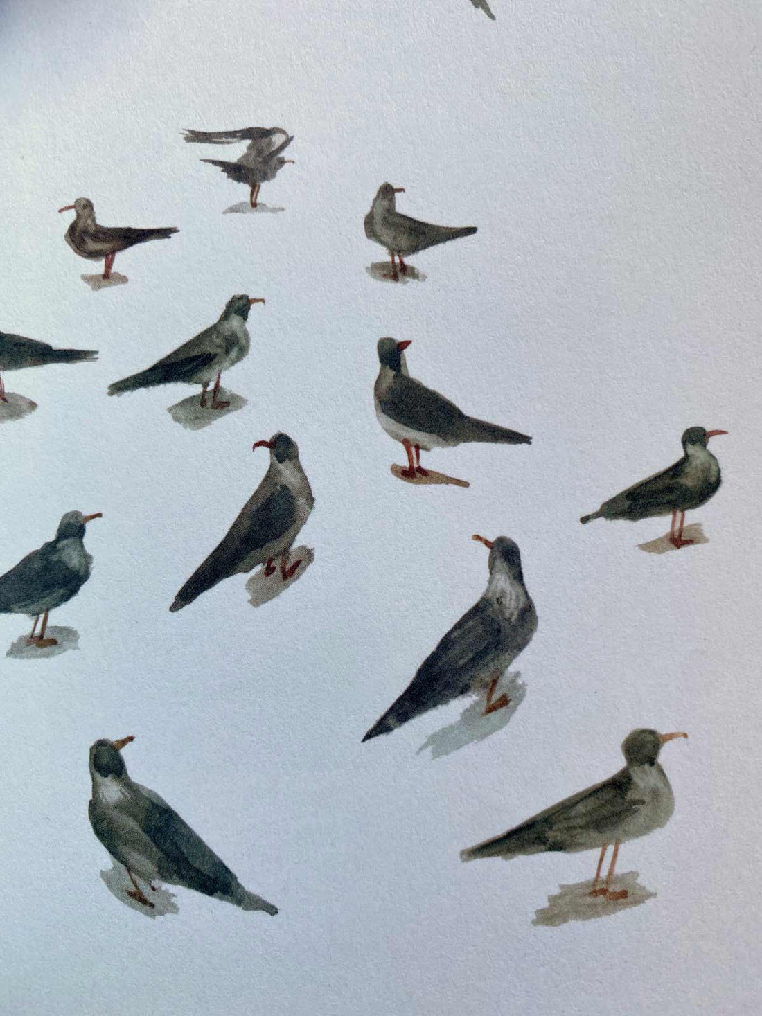 Sardoni e frattaglie. Tutte le sere al tramonto, puntuale come un orologio, o come il sole, un gabbiano bianco cala ai piedi di un pino, dentro un giardino, vicino a una casa, dove un uomo – e il suo cane – lo aspettano. Lui si chiama Gali Gali, anzi, saranno gli altri a chiamarlo così; l'uomo – e il suo cane, Zivil – passano la serata con lui, gli offrono buon cibo, e lui qualche volta si ferma a dormire col cane, dentro la sua cuccia. È così semplice l'amicizia, a volte. Gali Gali è un gabbiano reale, leggero come una piuma e rapido come una freccia. Volare è la sua passione e il suo gioco. È altero e sprezzante, anche, e considera con distacco i volgari gabbiani grigi che invece di divertirsi a volare alto frugano nei rifiuti alla perenne ricerca di cibo. Se si è diversi non bisogna mescolarsi mai; così dicono del resto anche gli uomini. Ma poi un giorno Gali Gali, trascinato in un altrove ignoto dalla furia di una tempesta, incontra una gabbiana grigia. Finalmente la guarda, e la vede. E scopre che non è poi così diversa da lui. O forse è solo una storia, e dunque non è sicuro che sia vera. Come succede con tutte le storie, del resto. Se Jonathan Livingston è il gabbiano puro e idealista, se la buffa gabbianella di Sepulveda è figlia naturale di un branco di gatti, ecco qui un pennuto diverso, umano, si direbbe, nelle sue contraddizioni: desideroso di legami e insieme remoto, innamorato del volo ma pronto ad amare sulla terra. Isole, acque, cieli del Quarnaro prendono vita nel primo racconto illustrato di Claudio Magris, affidato agli appunti in acquerello di Alessandro Sanna.