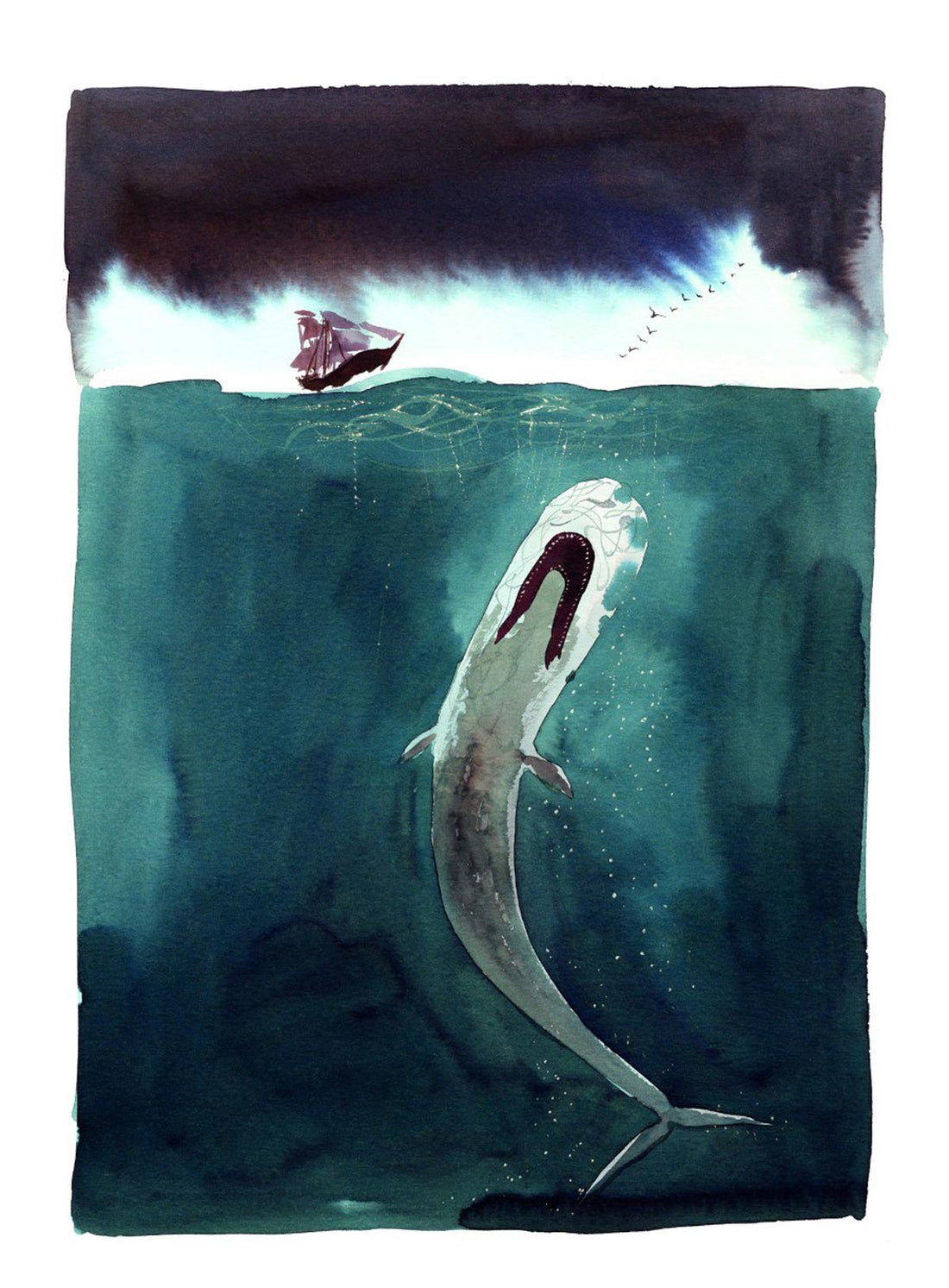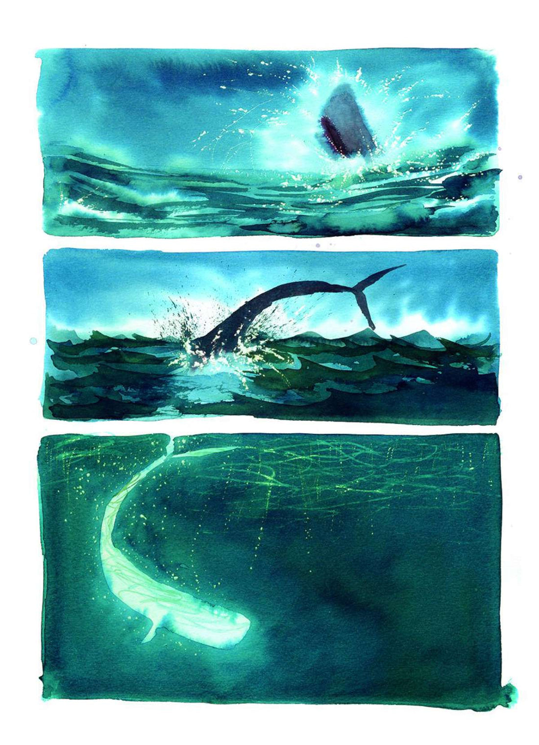 «Ci vuole un ammirevole coraggio per trarre un libro illustrato da Moby Dick: il terribile Achab e l'ancor più terribile balena incutono timore a chiunque, figurarsi a chi si getta in acqua con una matita in luogo di un arpione. Ma Alessandro Sanna conosce quel timore, e sa che per governarlo occorre credere radicalmente nella forma specifica del disegno: nella possibilità di cantare l'epica melvilliana attraverso la figura, infondendovi nuovi sensi e traendo da essa nuovi echi. Ricordo bene lo stupore che mi suscitò il libro, quando lo sfogliai per la prima volta. Era il Festivaletteratura del 2020; avevo avuto la fortuna di lavorare a un reading sulle Mille e una notte disegnato dal vivo da Alessandro. Il giorno dopo, ospite presso il suo studio, mi mise fra le mani queste tavole con la gentilezza schiva che lo contraddistingue. Rimasi a bocca aperta per la compostezza di ognuna di esse ― quasi un'opera a sé stante ― e per la dirittura narrativa dell'intero progetto; ma soprattutto, a stupirmi fu la sua grande libertà espressiva. Un ammirevole coraggio, davvero...» (Dalla Nota di Giorgio Fontana)