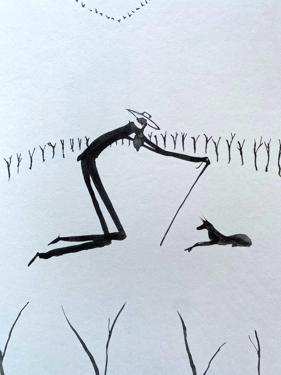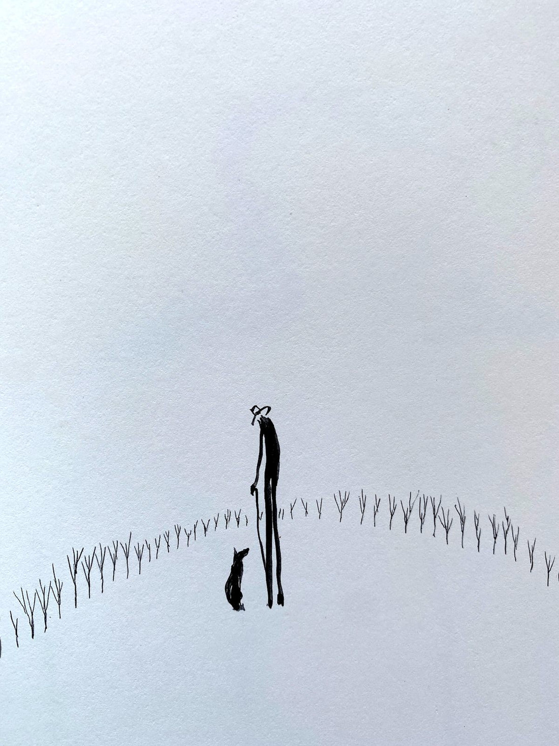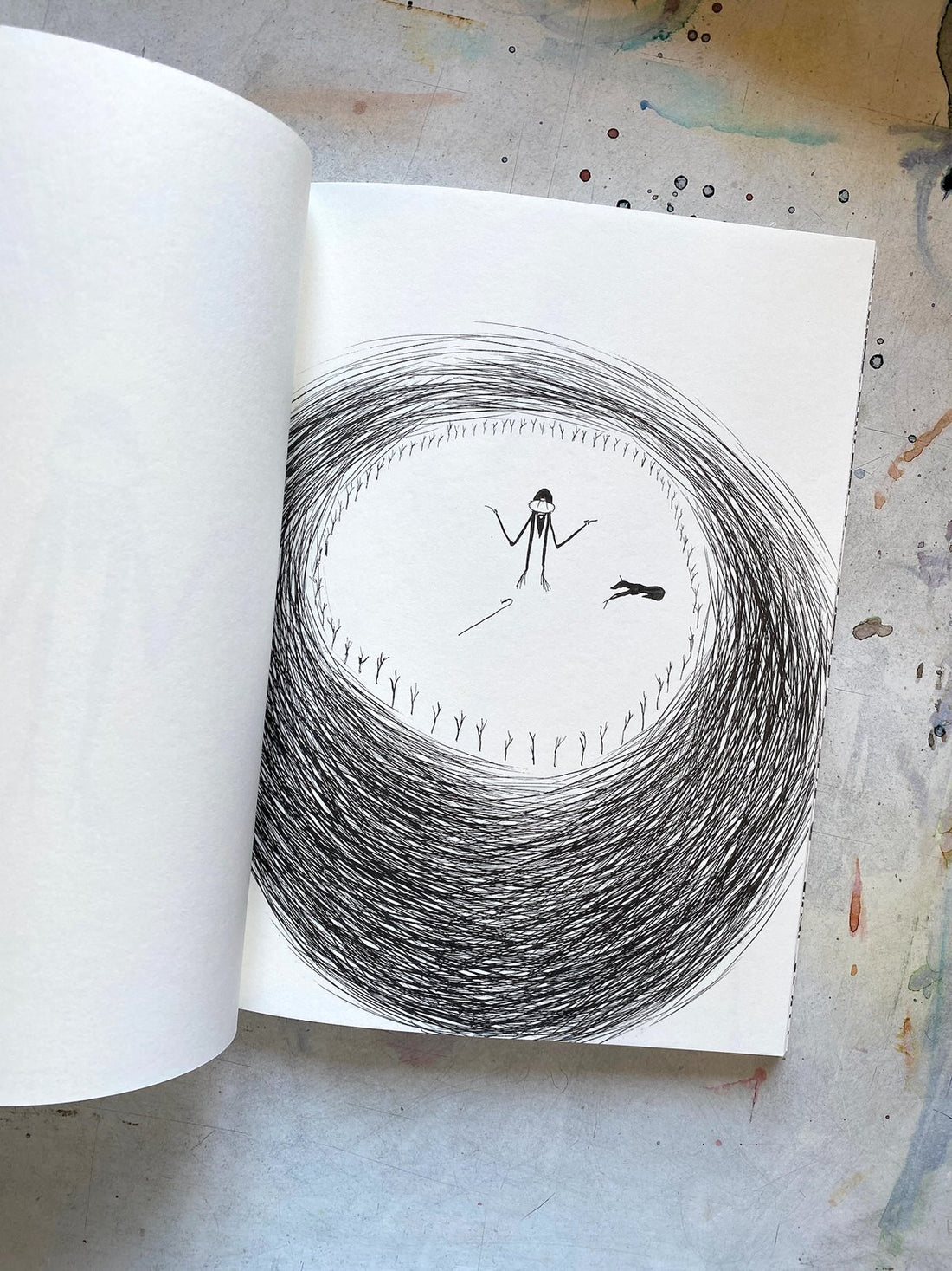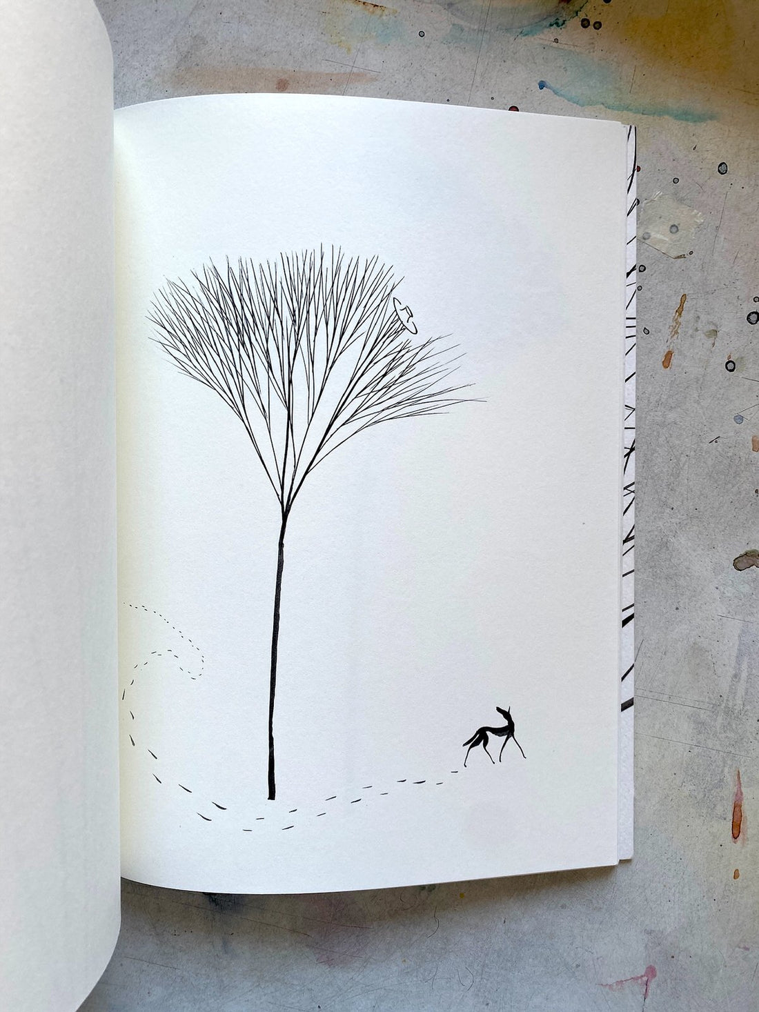 Una storia senza parole in bianco e nero. Un lento avvicinarsi alla profondità della memoria sino a sfiorare la tragedia della Shoah. Un uomo cammina nella neve con il suo cane, le loro tracce diventano simboli, aperture nella terra dove si trova una memoria universale. Un libro profondo e poetico.